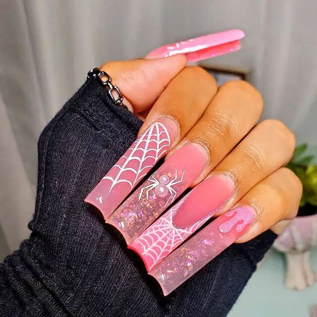 8. Halloween Inspo Nails: Pink with a Spooky Twist
