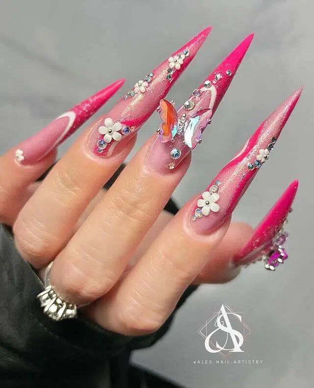 2. Hot Pink Stiletto Nails: Fierce and Bold