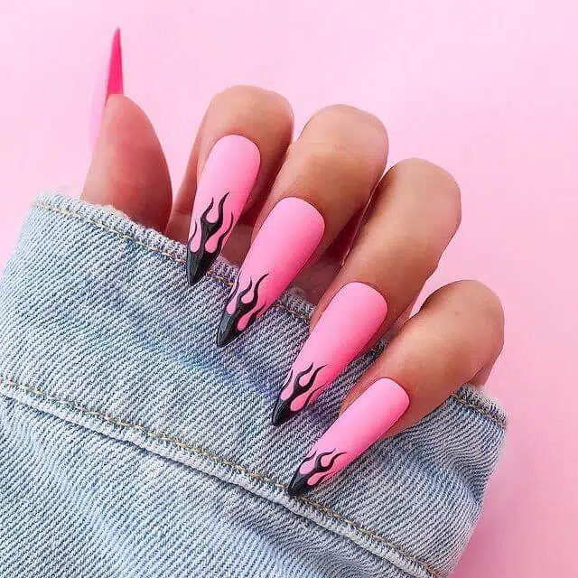 Turn up the heat with hot pink flame nails! This design features a hot pink base with bold flame accents, creating a fierce and edgy look. You can go for a glossy or matte finish, and add metallic accents or glitter for extra flair. These nails are perfect for those who want to make a bold statement with their manicure.