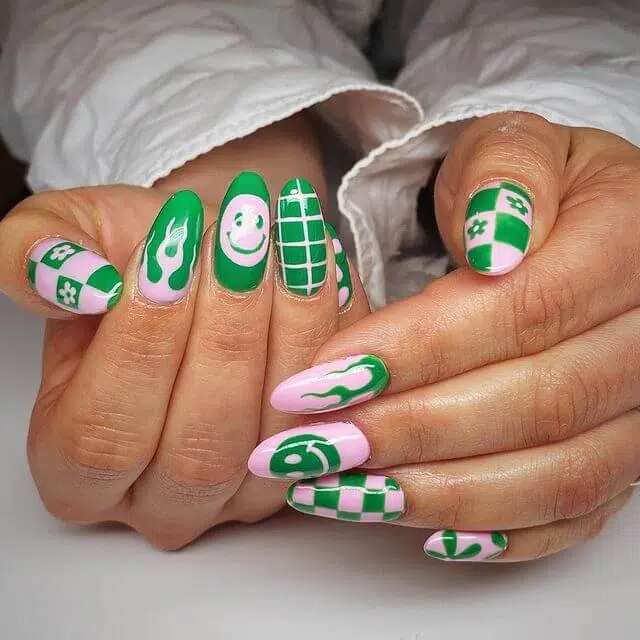 17. Pink and Green Manicure Design: Fresh and Funky